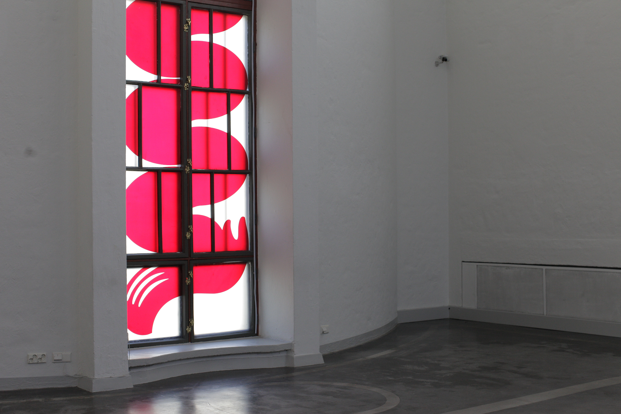 Potentially familiar, yet only provisional symbols, find their way into the exhibition sites windows; growing, stretching, twisting and contorting towards the very limits of their recognisability.